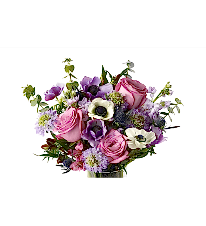 Anemon çiçekleri, güzellikleri ve zarafetleriyle bilinen bir çiçek türüdür. Bu özel tasarımda, anemon çiçekleri ile pembe güller mükemmel bir uyum içinde kullanılmıştır. Yeşilliklerle zenginleştirilen bu aranjman, masanızda, evinizde ya da ofisinizde harika bir dekorasyon parçası olacaktır.