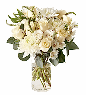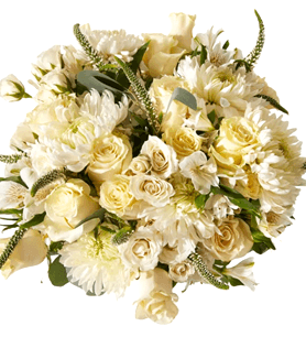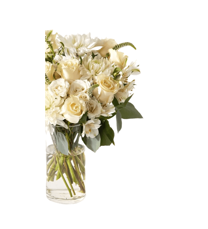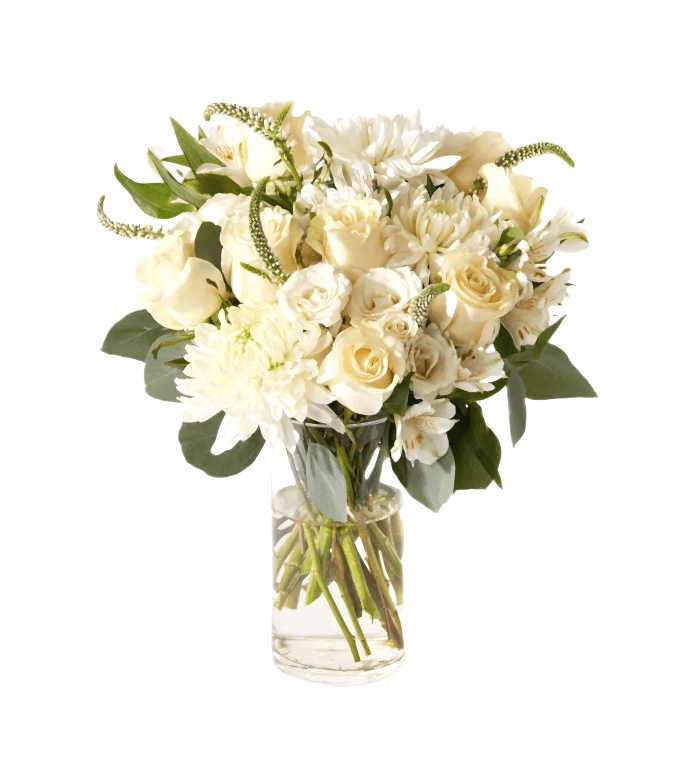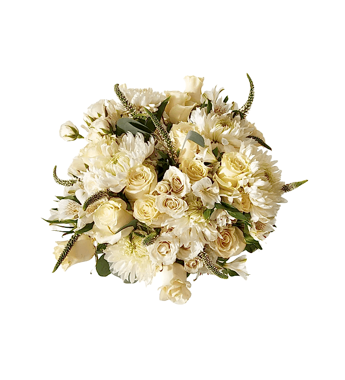 Merhaba! Belle de Mai adlı ürünümüz, beyaz güller ve yeşilliklerle süslendi. Bu tasarım, sevdiklerinize özel bir hediye vermek veya kendinizi şımartmak için mükemmel bir seçenektir.