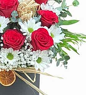 Hedefimiz, her gönderiminizi mükemmel kılmak ve en taze çiçekleri sizlere sunmaktır. Bu nedenle tasarımlarımızda kullanılan her bitki, en yüksek kaliteyle seçilmekte ve uzman eller tarafından şekillendirilmektedir. Kırmızı gülün zarif görüntüsü ve papatyanın saf beyazlığı, sevdiklerinize olan duygularınızı en şık şekilde yansıtır. Gönlünüzdekini anlatmak için ihtiyacınız olan her şey, bu kutuda bir araya geliyor.