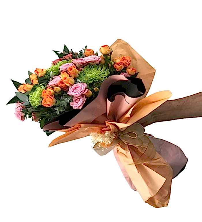Bridal Melody Çiçeği ile doğanın zarafetini ve güzelliğini özel günlerinizde hissedin. Bu zengin yeşilliklerle süslenen çiçek buketi, içinde barındırdığı 15 turuncu ve 15 pembe çardak gül, 3 yeşil anastasya ve egzotik yeşilliklerle birlikte benzersiz bir görünüm elde ediyor.