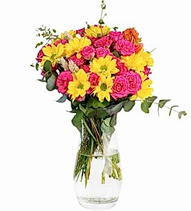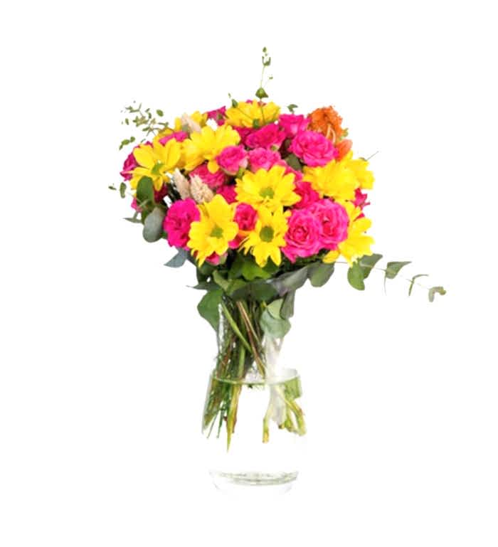 Bu şık aranjman, pembe güller, sarı papatyalar ve taze kaliteli dekoratif zengin yeşilliklerle süslenen Butterfly Bush çiçeğini bir araya getiriyor. Tüm bu çiçeklerin muhteşem uyumu, göz kamaştırıcı bir görüntü oluşturuyor. Zarafeti ve güzelliğiyle dikkat çeken bu aranjman, sevdiklerinizin özel günlerini taçlandırmak için harika bir seçenek.