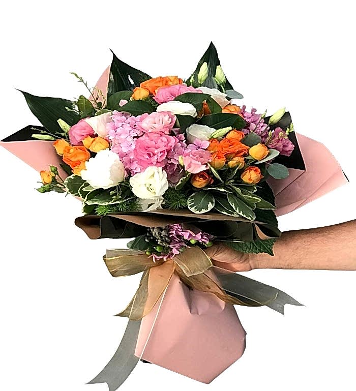 Floral Galaxy Buketi, doğanın en güzel renkleriyle bezeli harika bir aranjmandır. Turuncu çardak gülün sıcaklığı, beyaz lisyantusun saflığı ve pembe lisyantusun romantizmi bu muhteşem bükete hayat veriyor. Bu çarpıcı düzenlemeye pembe Hüsnü Yusuf ile bir dokunuş eklenirken, egzotik yeşillikler ve okaliptüs yaprakları ile tamamlanmıştır.