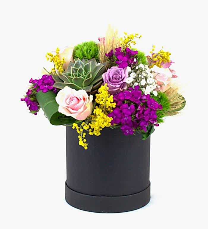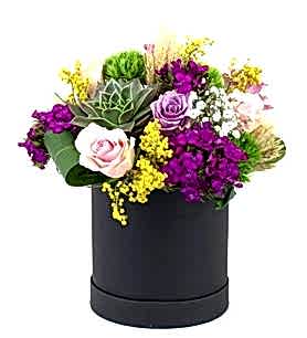 Flower Box adlı muhteşem ürünümüzü size tanıtmaktan büyük bir heyecan duyuyoruz. Bu özel çiçek kutusu, renkli papatyalar ve dekoratif pembe güllerle süslendi ve yeşilliklerle tamamlanarak göz alıcı bir tasarım oluşturdu. Siyah kutusu ise modern ve şık bir görüntü sunarak sevdiklerinize özel bir hissettirecek.