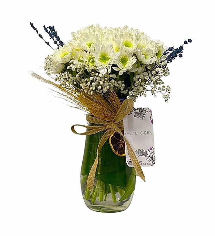 Ürün detayı: Özel 5 dal (30 kandil papatya) cipso fulya ve başaklar ile tasarlandı.Ürün ebatı :30 - 35 cm