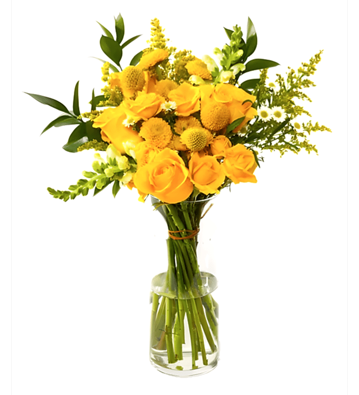 Her zaman taptaze ve kaliteli olan Lemon-de adlı bu harika aranjman, size özel bir sevgi mesajı taşıyor. Cam vazoda sunulan bu çiçek aranjmanı, sarı güllerin aydınlık enerjisiyle beyaz papatyaların saflığının muhteşem bir uyumunu yansıtıyor. Yeşilliklerle süslendirilen bu zarif tasarım, sevdiklerinizi şaşırtmak veya kendinizi ödüllendirmek için mükemmel bir seçimdir.