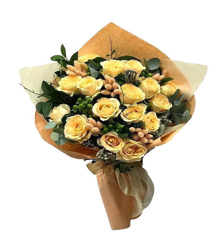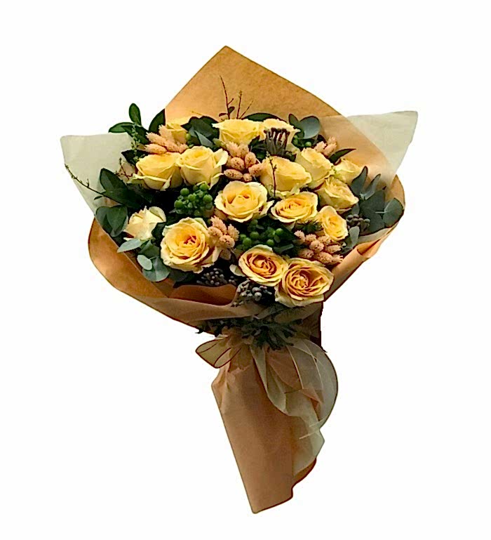 Sevdiklerinizi mutlu etmek için en özel hediye, Luxury Yellow Roses Bouquet ile karşınızda! Çiçek tasarım ekibimiz, taze somon güller, hiperkum ve okaliptüsleri bir araya getirerek bu eşsiz buketi oluşturdu. İthal natürel kağıdın zarifliği ise bu şahane tasarımı tamamlıyor.