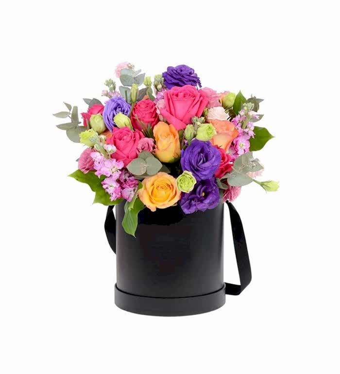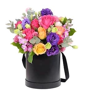Mix roses kutu çiçek gül Aranjmanı, herhangi bir ortamda dikkat çekecek sempatik ve renkli bir görüntü sunar. Kırmızı, beyaz, lila ve turuncu güllerin harika uyumu, yeşillikler ile tamamlanarak, bir renk karnavalına dönüşür. Yuvarlak siyah kutusunda sunulan bu özel hediye, ona sevginizi ve saygınızı en özel şekilde ifade etmenizi sağlayacak.