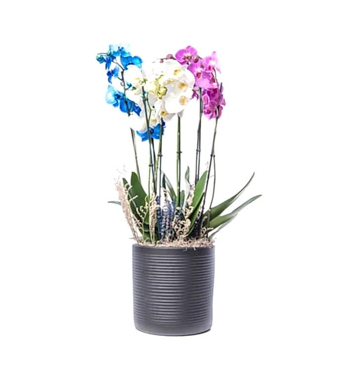 Mixed Orkide, doğanın büyülü renklerini bir araya getiren benzersiz bir tasarıma sahip olan bir çiçek aranjmanıdır. Bu göz alıcı aranjman, beyaz, mor ve mavi orkidelerin zarif bir şekilde bir araya getirildiği, etkileyici yeşilliklerle süslendiği bir kompozisyondur. Tasarımındaki ince detaylar ve renklerin uyumu, hem iç mekanlarda hem de özel etkinliklerde harika bir görüntü oluşturur.