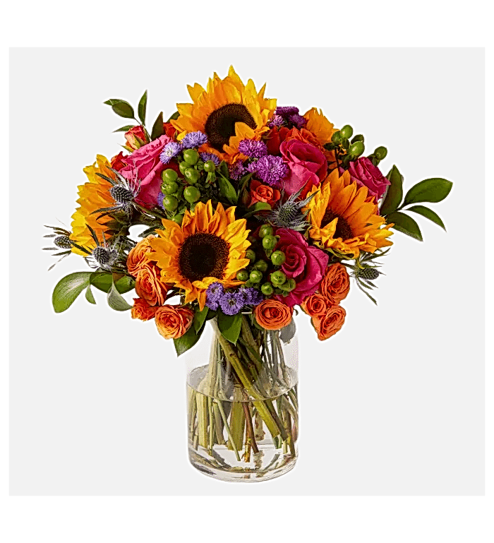 Merhaba! Muette, güzellik ve zarafeti bir araya getiren yeni bir ürün. Muette, turuncu, pembe ve beyaz güller, ayçiçeğiyle birlikte yeşilliklerle süslendi, tasarımda da en ince ayrıntılar düşünüldü.
