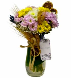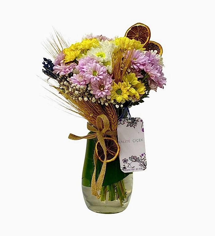 Our Love Nest adlı ürünümüz, özenle tasarlanmış ve özel bir çiçek aranjmanıdır. Bu harika buket, taze ve kaliteli sarı beyaz papatyalarla başlar ve kurutulmuş başak, lavanta, cipso fulya çiçeği ve yeşillikler ile süslenir. Cam vazo içinde sunulan buket, herhangi bir evde veya ofiste mükemmel bir dekorasyon parçası olacaktır.