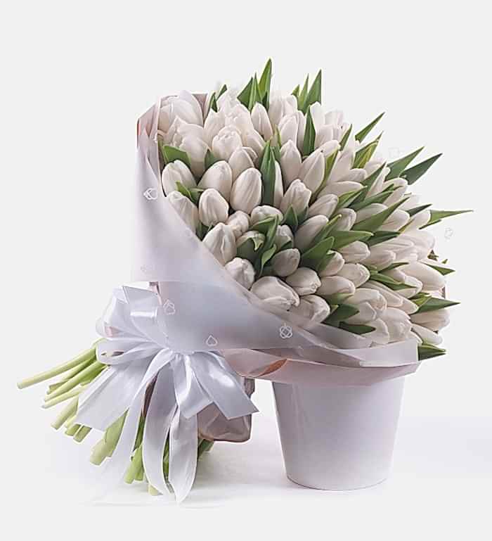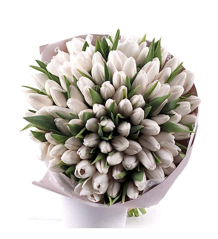 Premium 100 Beyaz Lale Buketi – Zarafetin ve Saflığın Simgesi