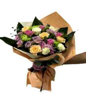 Sevgiyi, aşkı ve tutkuyu ifade etmenin en güzel yollarından biri renkli güller buketleri ile olur. Biz de sizlere özel olarak tasarladığımız beyaz gül, lila gül, somon gül, pembe gül, yeşil anastasya, pembe hüsnü Yusuf ve okaliptüs yapraklarından oluşan özel buketimizi sunuyoruz. Egzotik yaprak yeşillikleri ile süslenen bu buket, sevdiklerinize duygularınızı en güzel şekilde ifade etmeniz için tasarlandı.