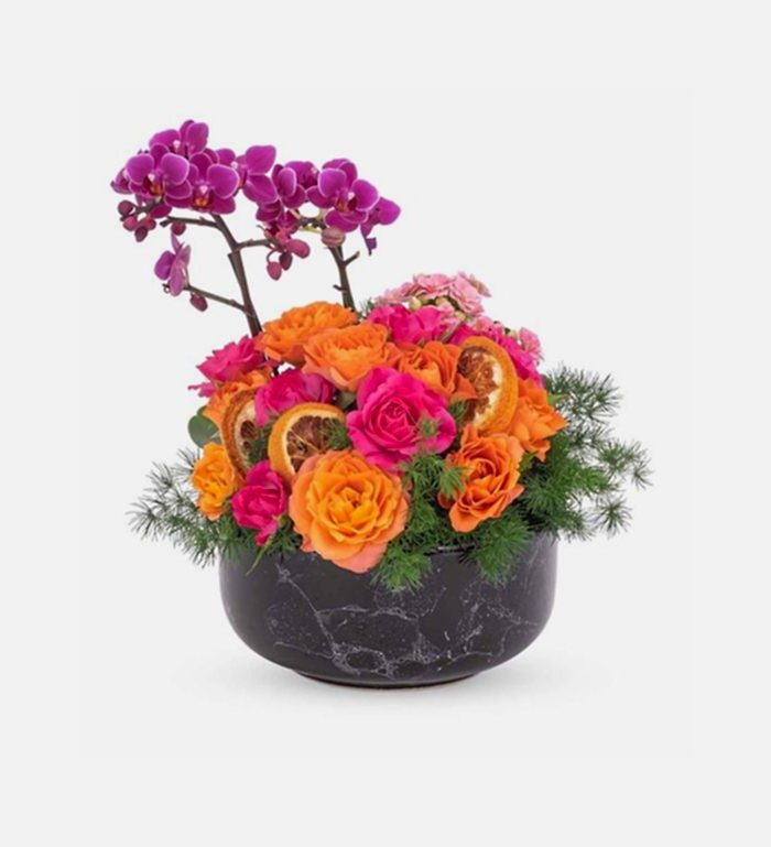 Sevginizi ve şefkatinizi sevdiklerinizle paylaşmanın en güzel yolu Teraryum Mix orkide ile mümkün! Bu özel tasarım, iki dallı orkide çiçekleriyle harmanlanmış kırmızı gül ve turuncu renk güller ile dekoratif kuru çiçekler ve yeşilliklerle tamamlanarak, sevdiklerinize hem doğanın güzelliklerini hem de sizin özel hislerinizi sunuyor.