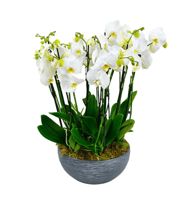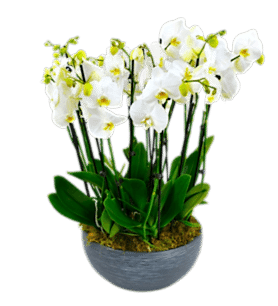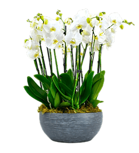 Zelinda orkide, beyaz orkide ve yeşilliklerin muhteşem uyumu ile tasarlanmıştır. Bu özel tasarım, evinizin veya ofisinizin her köşesinde harika bir dekorasyon parçası olacak. Zelinda orkide, özel günlerinizde sevdiklerinize mükemmel bir hediye seçeneği sunuyor.